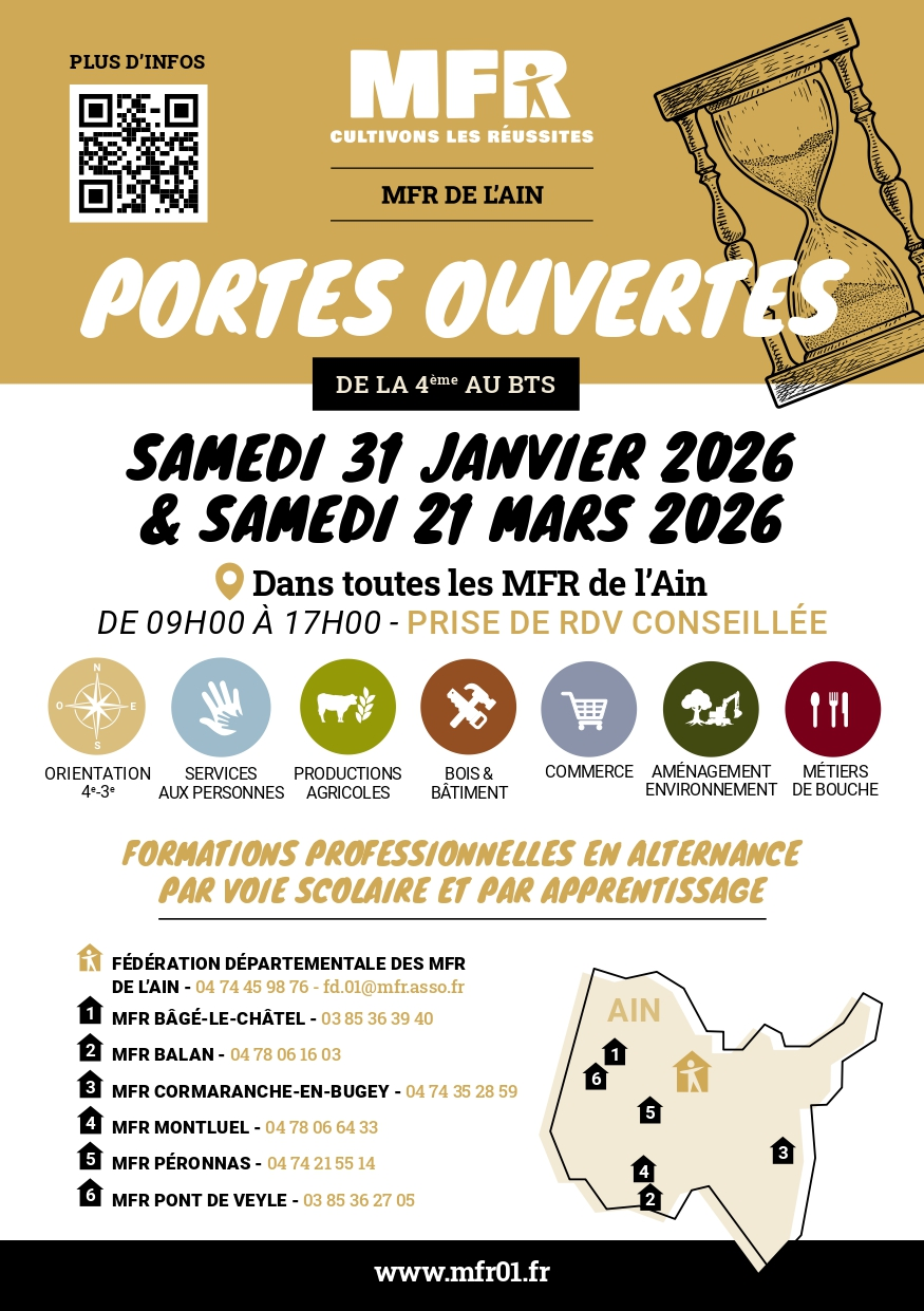 La MFR de Bâgé-le-Châtel propose des formations en alternance par voie scolaire ou par apprentissage qui ont toutes la même caractéristique : une partie de la formation se déroule en entreprise, sur une exploitation, dans une commune, etc …